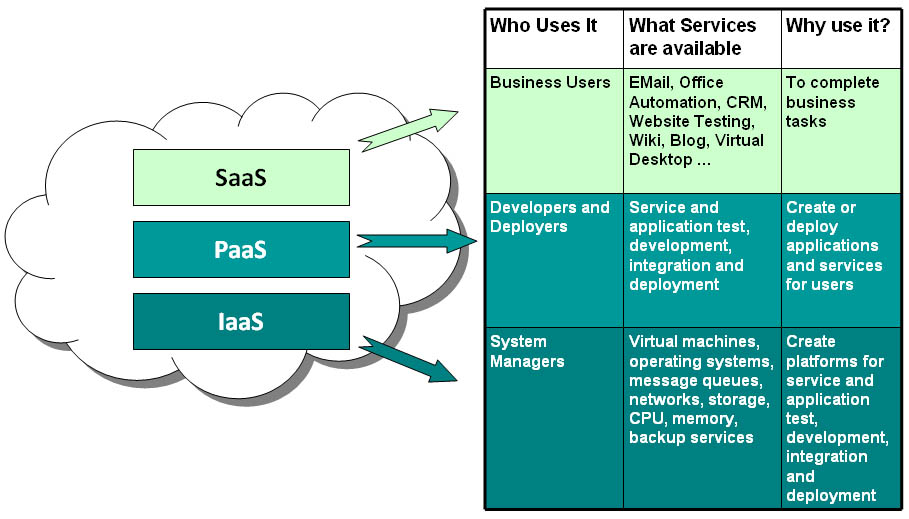 There are other groupings like DAAS for Data as a Service, MAAS, Monitoring as a Service, etc. But the three mentioned above cover the significant chunk of the offerings currently available on the Cloud.